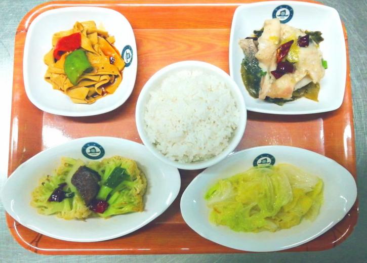 D套餐(辣):酸菜鱼+香辣千张+麻辣菜花+青菜+米饭 单价:20元