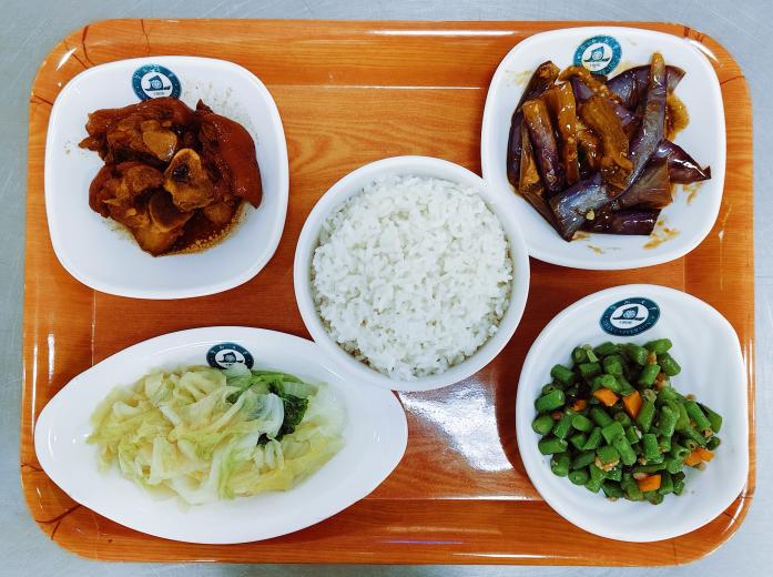 C套餐:卤水猪手+红烧茄子+豆角粒肉沫+青菜+米饭+米饭 单价:20元